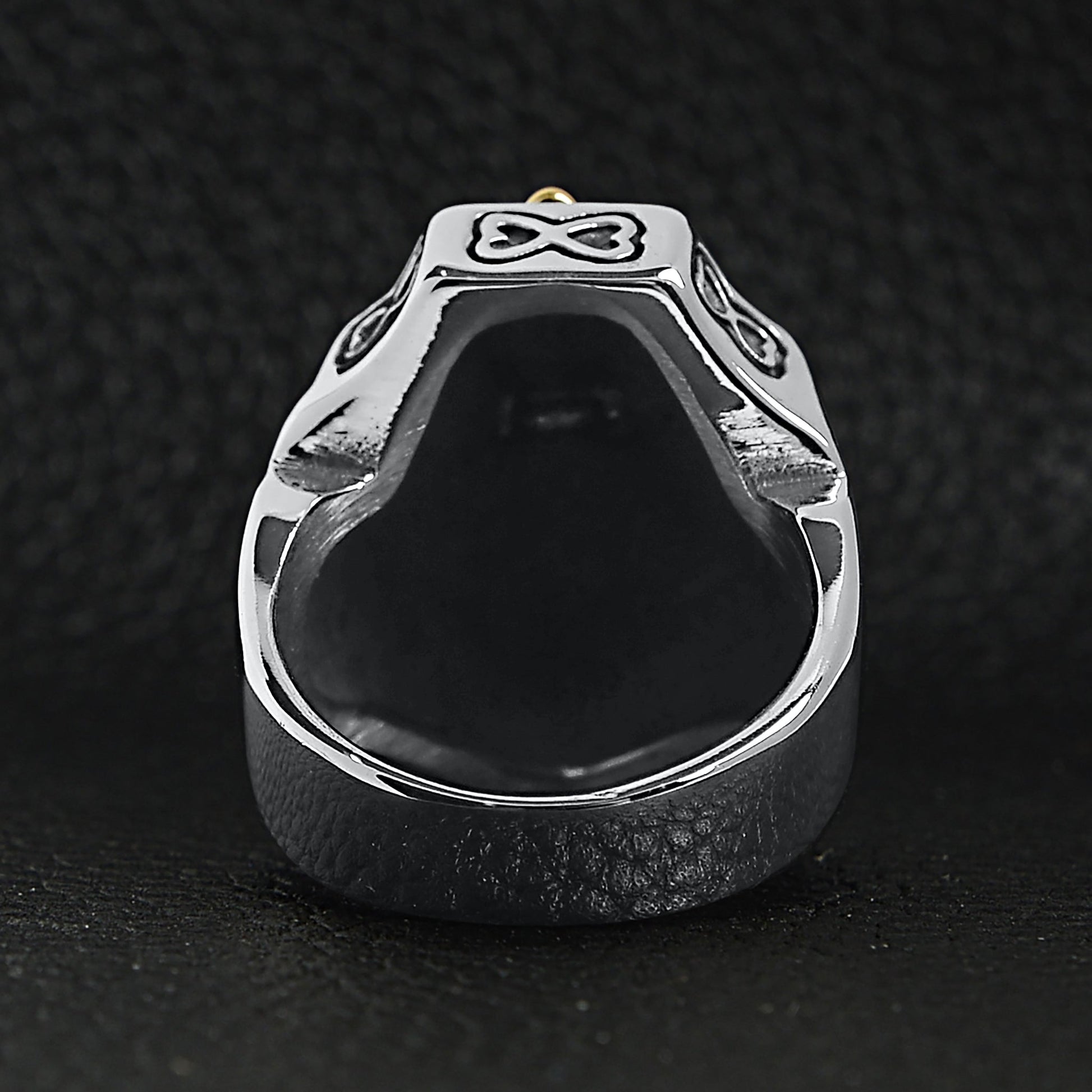 18K Gold Steel Cross On Shield Signet Ring