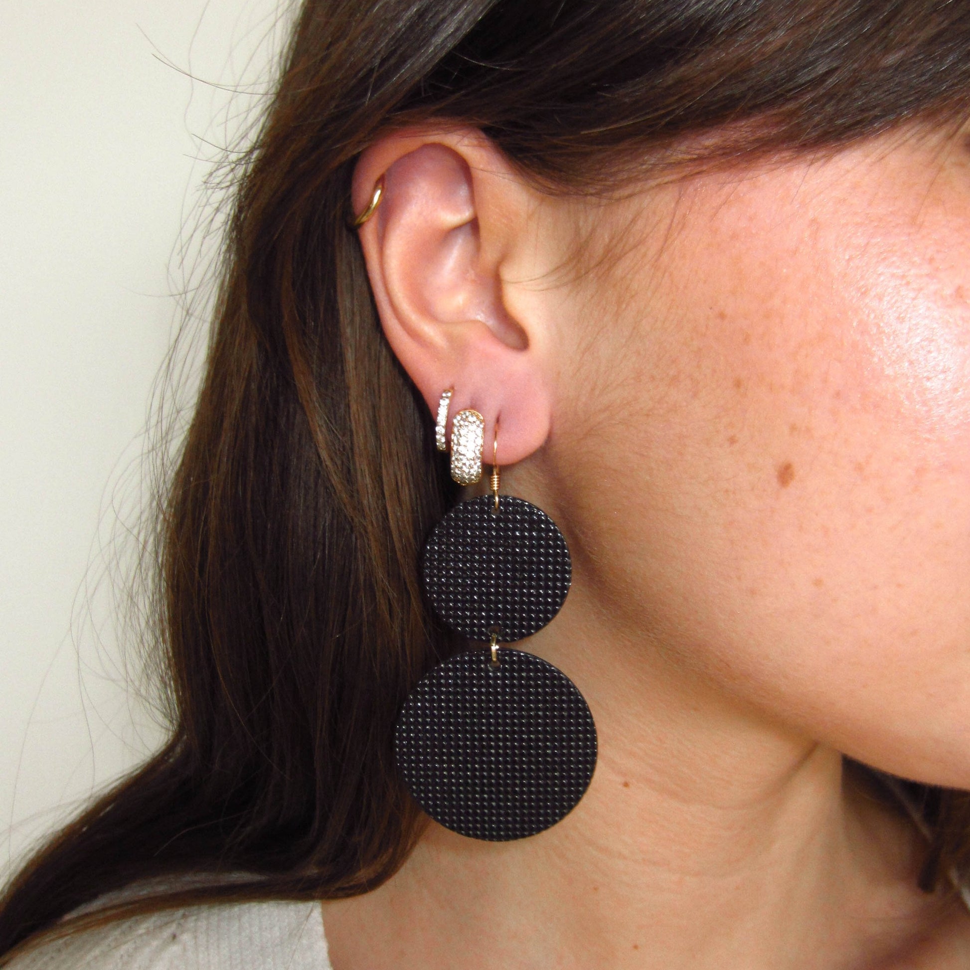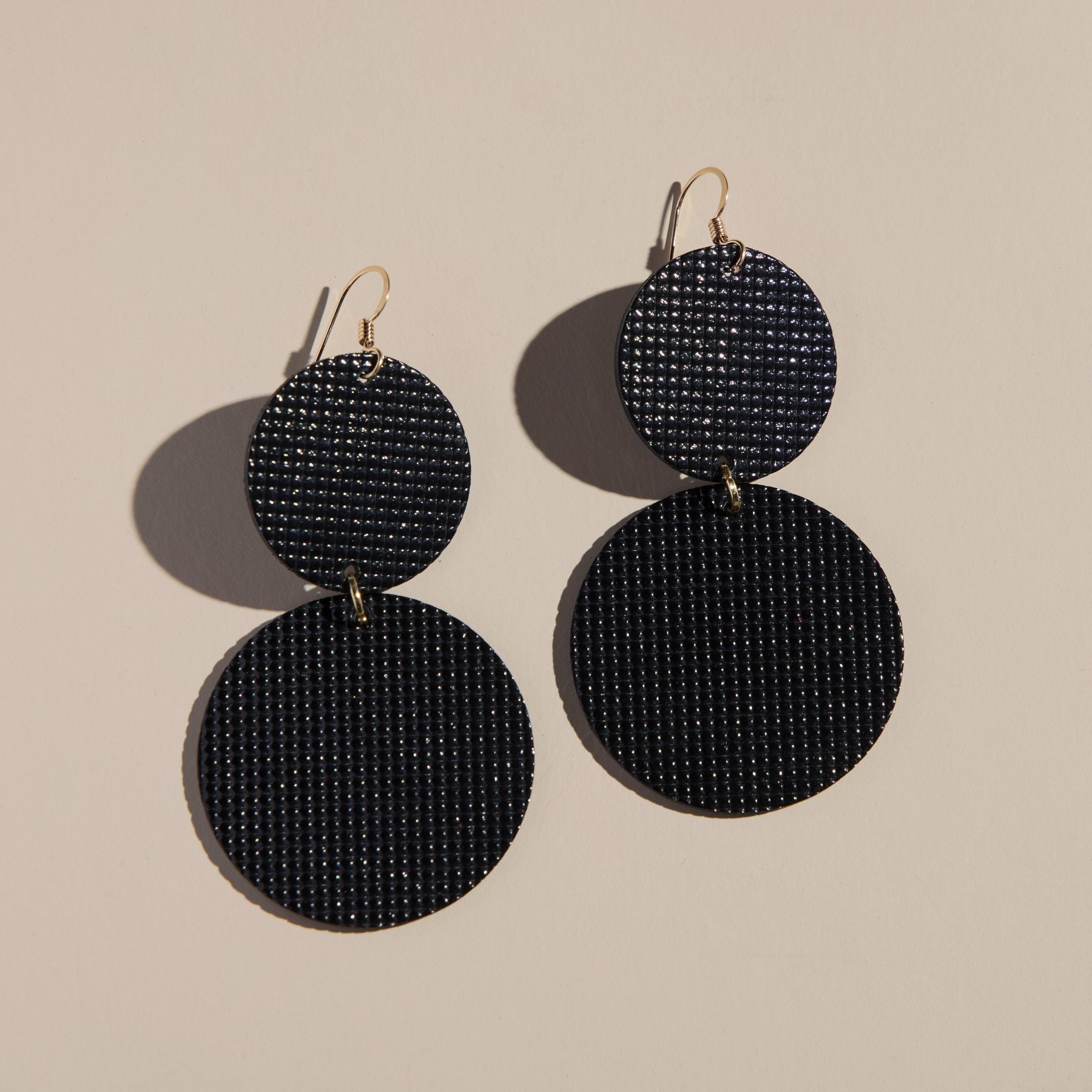 Go big with our bold new Devon in textured Afterglow leather. Featuring a fun circular silhouette, these statement earrings have the right balance of motion and weightlessness.