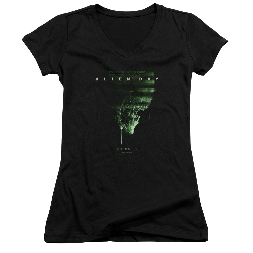 Aliens Alien Day 2018 Junior Sheer Cap Sleeve V-Neck Womens T Shirt Black