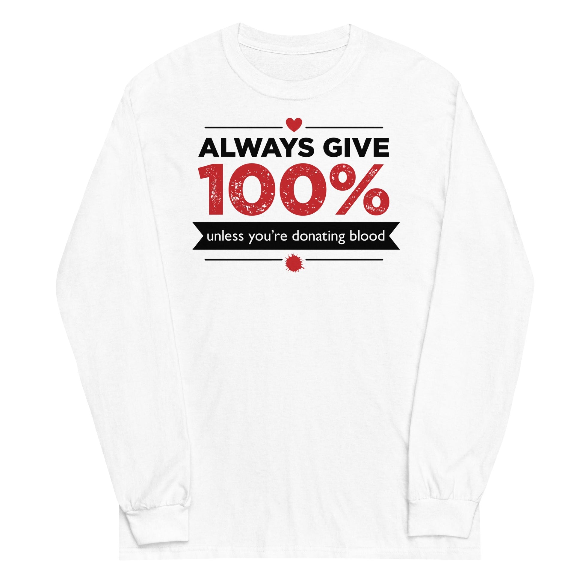 Always Give 100%, Unless You're Donating Blood Unisex Long Sleeve Tee