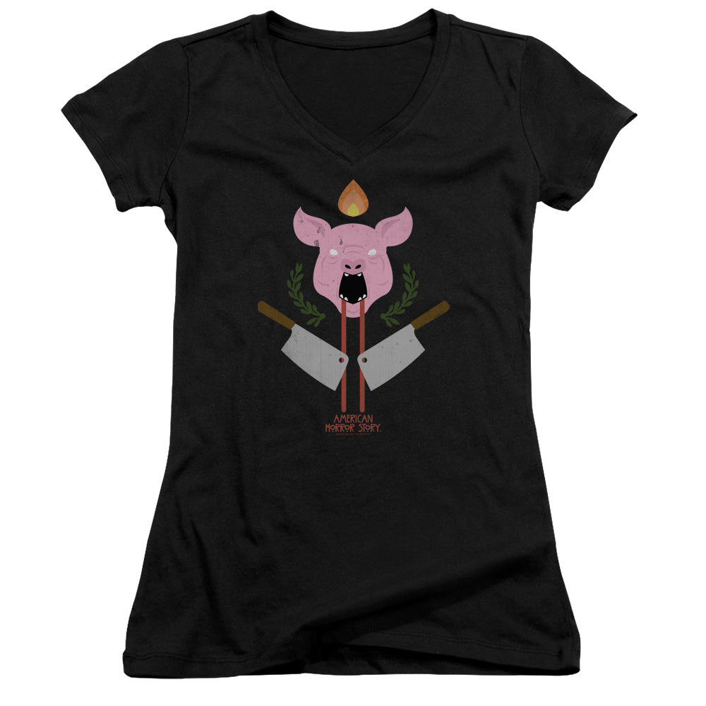 American Horror Story Pig Cleavers Junior Sheer Cap Sleeve V-Neck Womens T Shirt Black