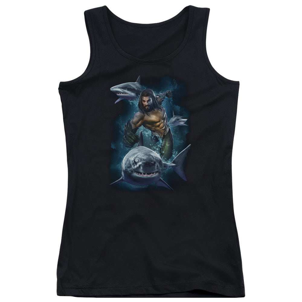 Aquaman Movie Swimming With Sharks Womens Tank Top Shirt Black