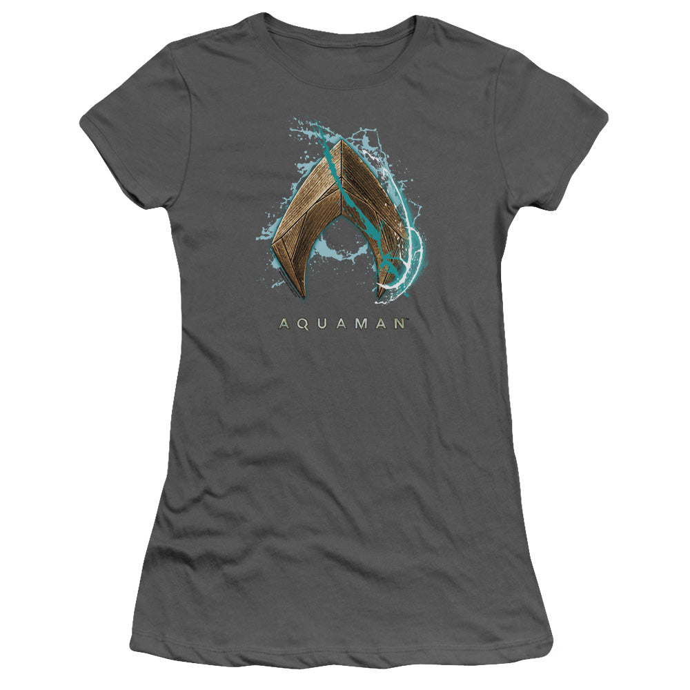 Aquaman Movie Water Shield Junior Sheer Cap Sleeve Womens T Shirt Charcoal