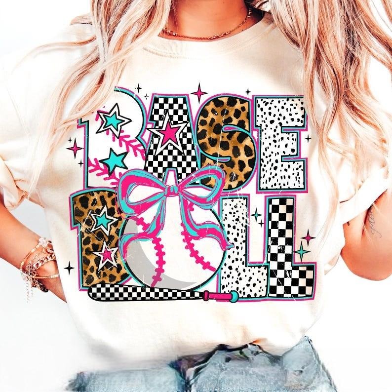 Baseball Coquette Funny Tshirt, Preppy Baseball Shirt, Game Day T-Shirt, Basseball Mama Tee, Checkered Baseball Top Womenswear