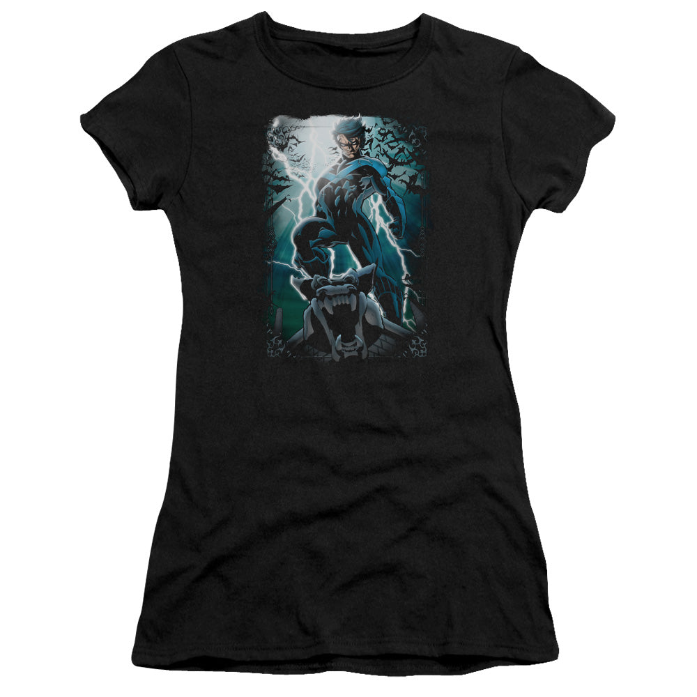 Batman Night Light Junior Sheer Cap Sleeve Womens T Shirt Black