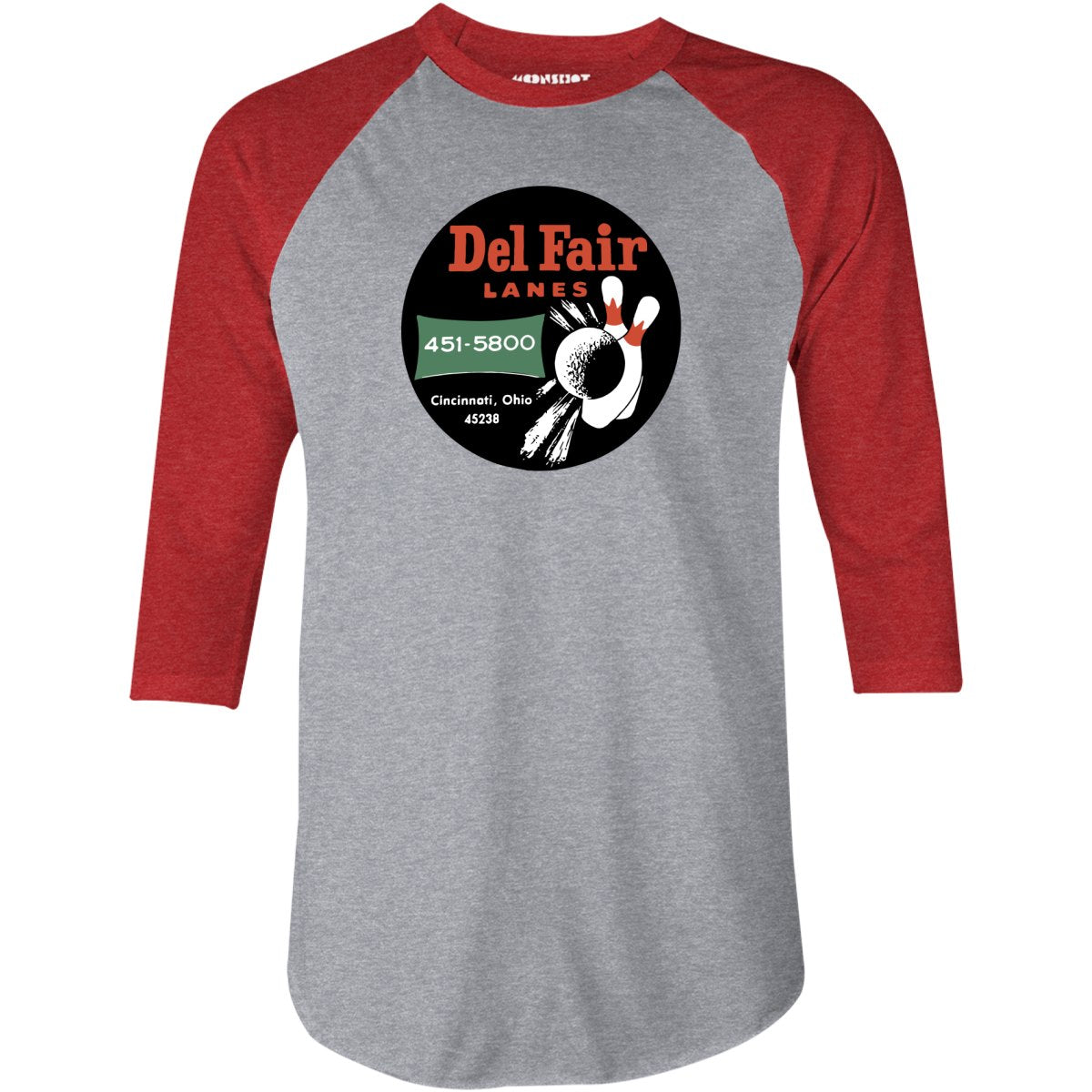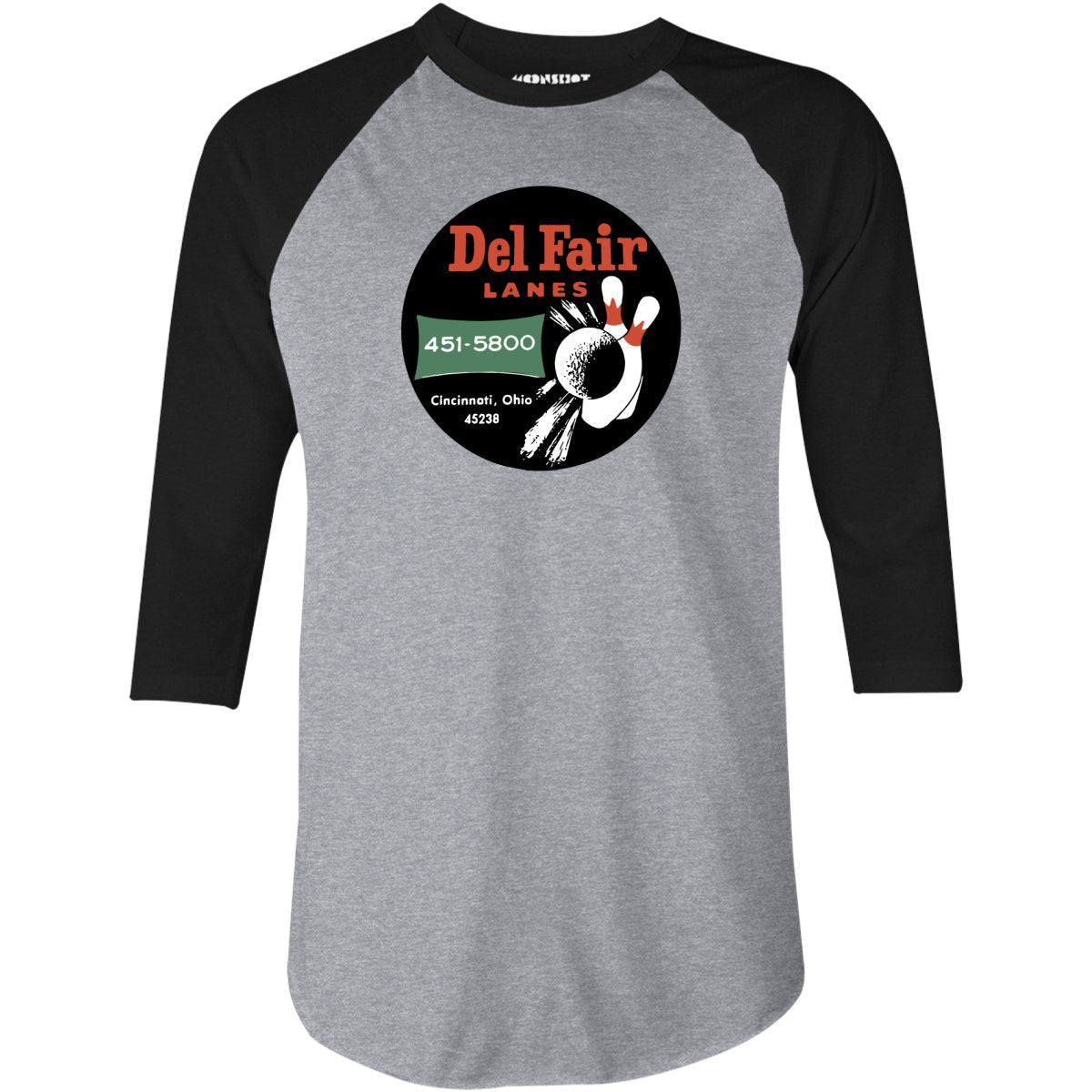 Del Fair Lanes - Cincinnati, OH - Vintage Bowling Alley - 3/4 Sleeve Raglan T-Shirt