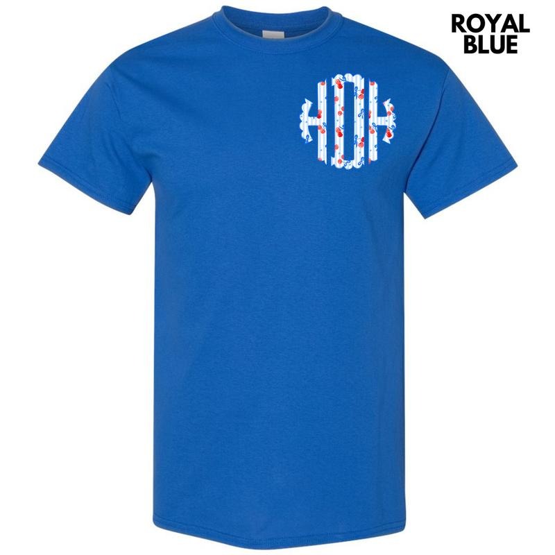 Pocket Size - Cherry Stripe Monogram Gildan Short Sleeve T-Shirt 'NLB'