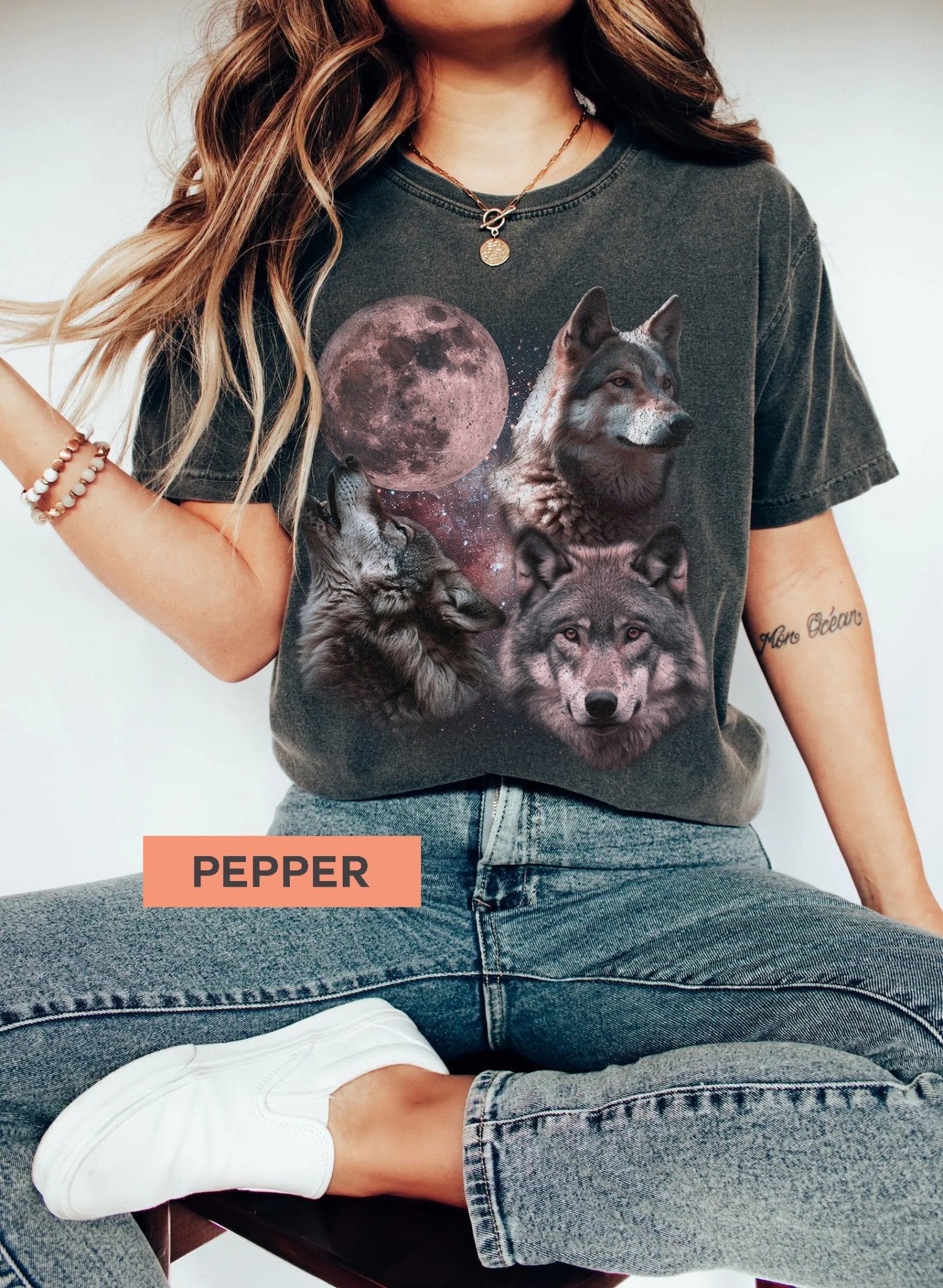 Retro Wolves and The Moon Vintage Graphic Tee.