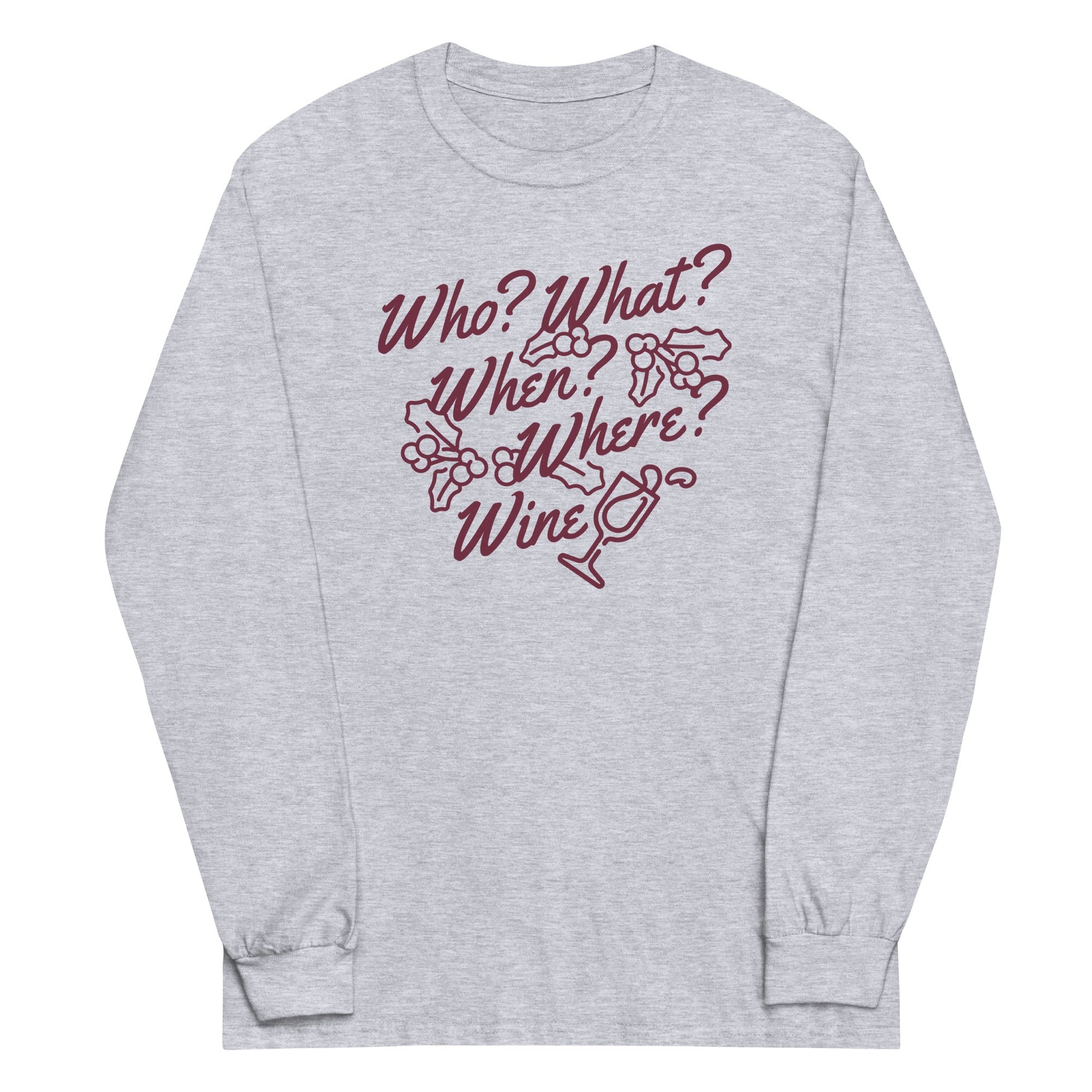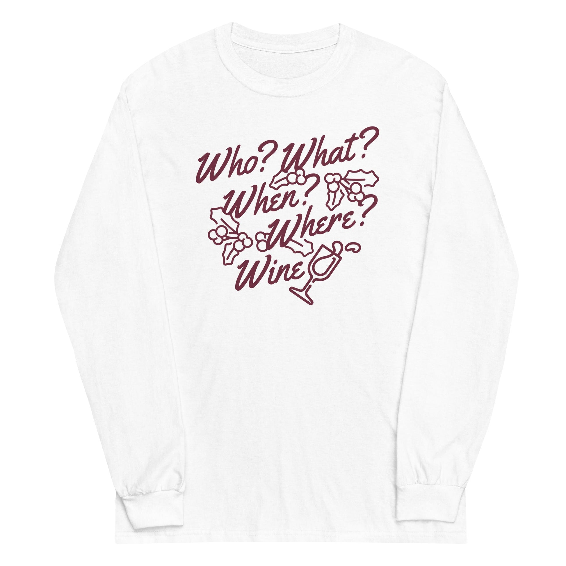 Who? What? When? Where? Wine? Unisex Long Sleeve Tee